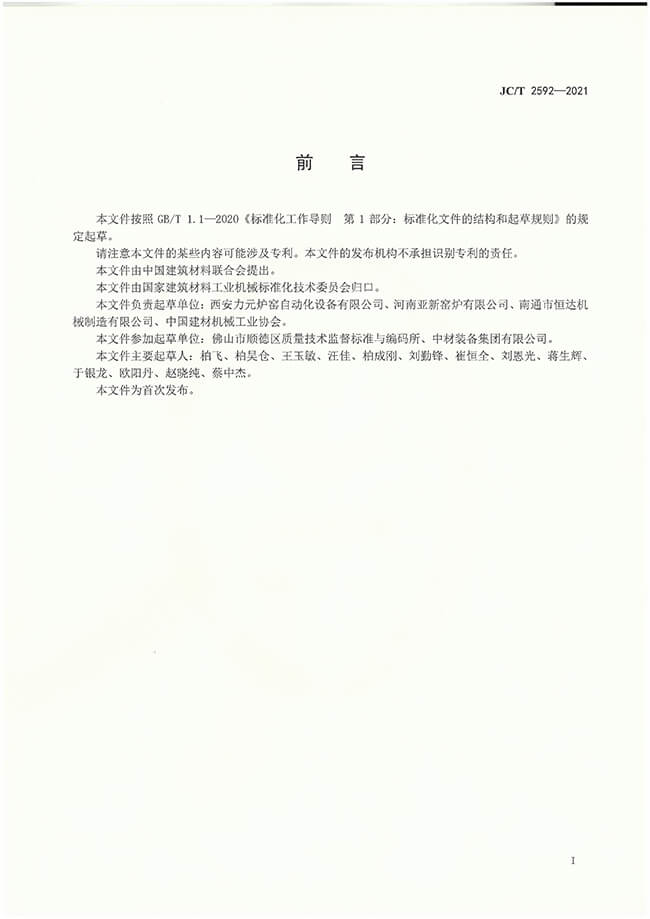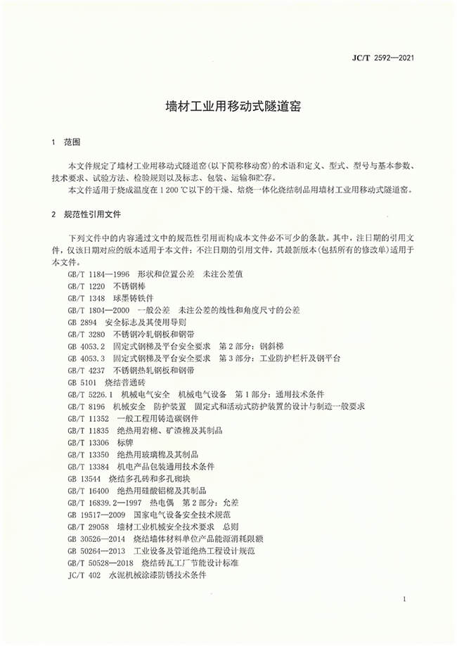 墻材用移動式隧道窯行業(yè)標準