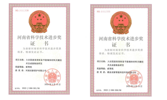 河南亞新窯爐有限公司/河南睢縣亞新智能科技環(huán)保有限公司的科研成果“大宗固廢高效制備節(jié)能墻體材料關(guān)鍵技術(shù)及成套裝備研發(fā)”喜獲“河南省科學(xué)技術(shù)進(jìn)步二等獎”,此項目獲獎是河南亞新公司近年以來獲得的最高獎項,也是墻材行業(yè)唯一的一個裝備制造企業(yè)獲得的省級科學(xué)技術(shù)進(jìn)步二等獎的企業(yè)。