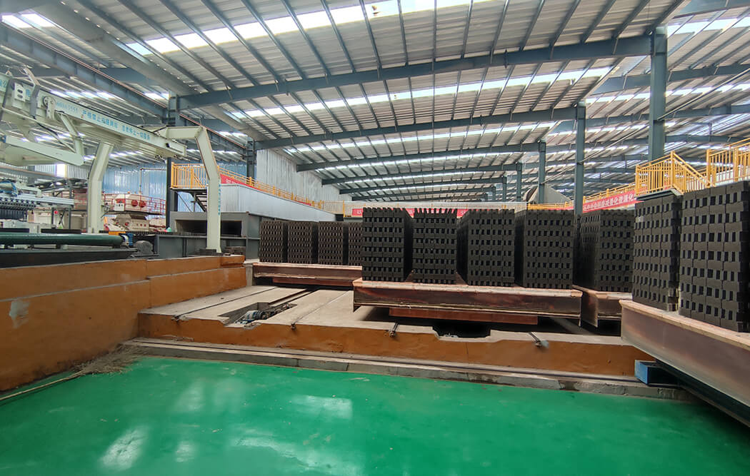 大斷面保證產(chǎn)量,降低行火速度保證質(zhì)量,減少焙燒時(shí)的熱量需求,大大降低產(chǎn)品的綜合能耗,適當(dāng)延長(zhǎng)焙燒時(shí) 間,解決黑心磚和成品磚的粘連問(wèn)題。