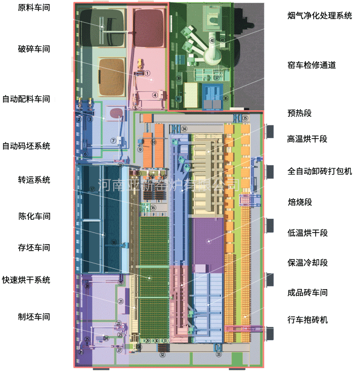 大斷面多拼式節(jié)能隧道窯平面布局圖